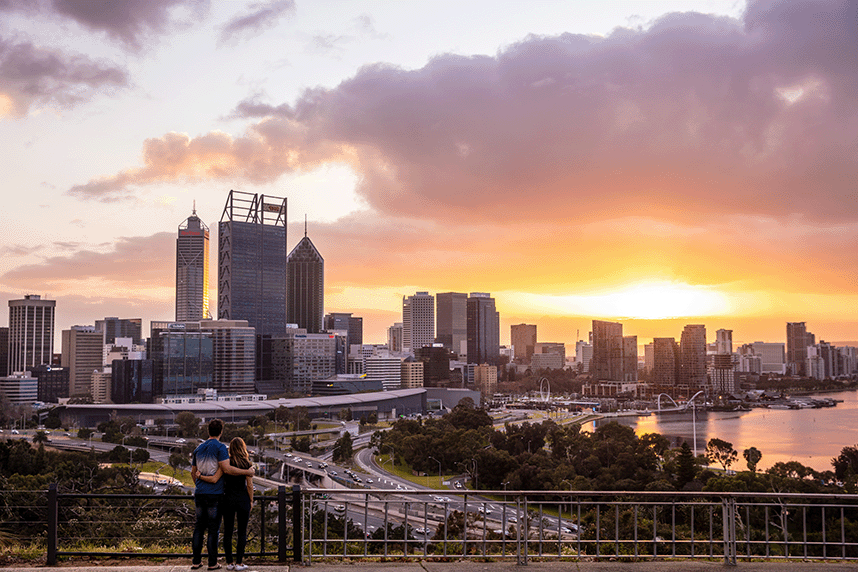 Just minutes from the city centre, Kings Park offers panoramic views over the Swan River and Perth skyline. As the sun sets behind the distant hills, the city lights begin to glow, making it a favourite spot for both locals and visitors.